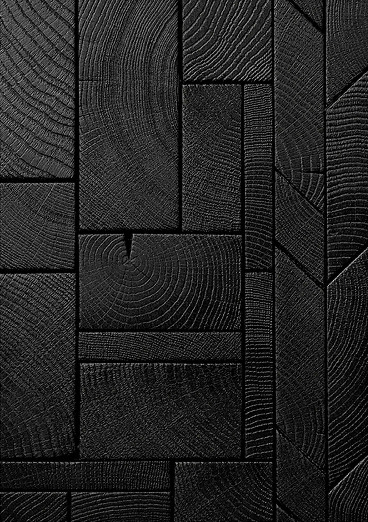 The FORÊT black finish celebrates the Japanese burning technique “shou-sugi-ban” revealing a deeply textured black. A 2 component invisible varnish seals the hardened surface and contributes to the high resistance. A highly crafted surface in an uncompromising quality.